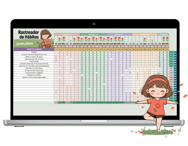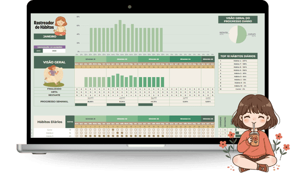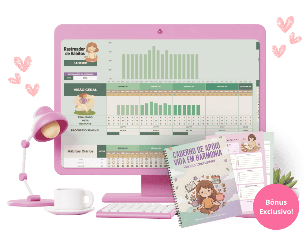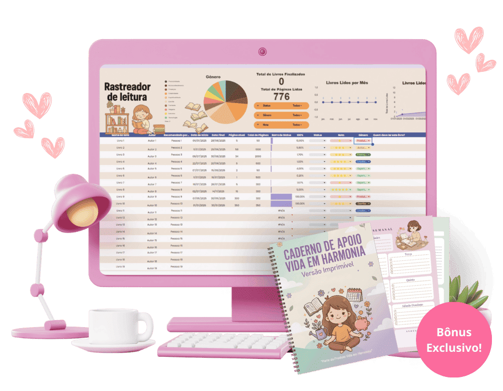 São 6 planilhas lindas e fáceis de usar para você dominar suas finanças, hábitos, leituras e tarefas sem perder a sua essência.