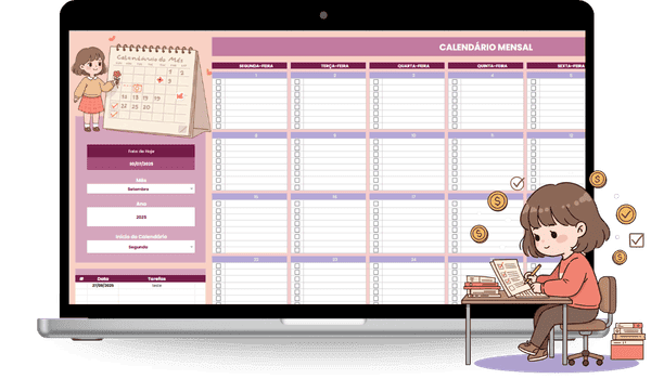Dê uma espiadinha nas 6 planilhas que você receberá em seu pacote de organização pessoal. Além de muito fáceis de usar (você não precisará saber fazer fórmulas ou baixar aplicativos), receberá vídeo-aulas ensinando passo a passo: